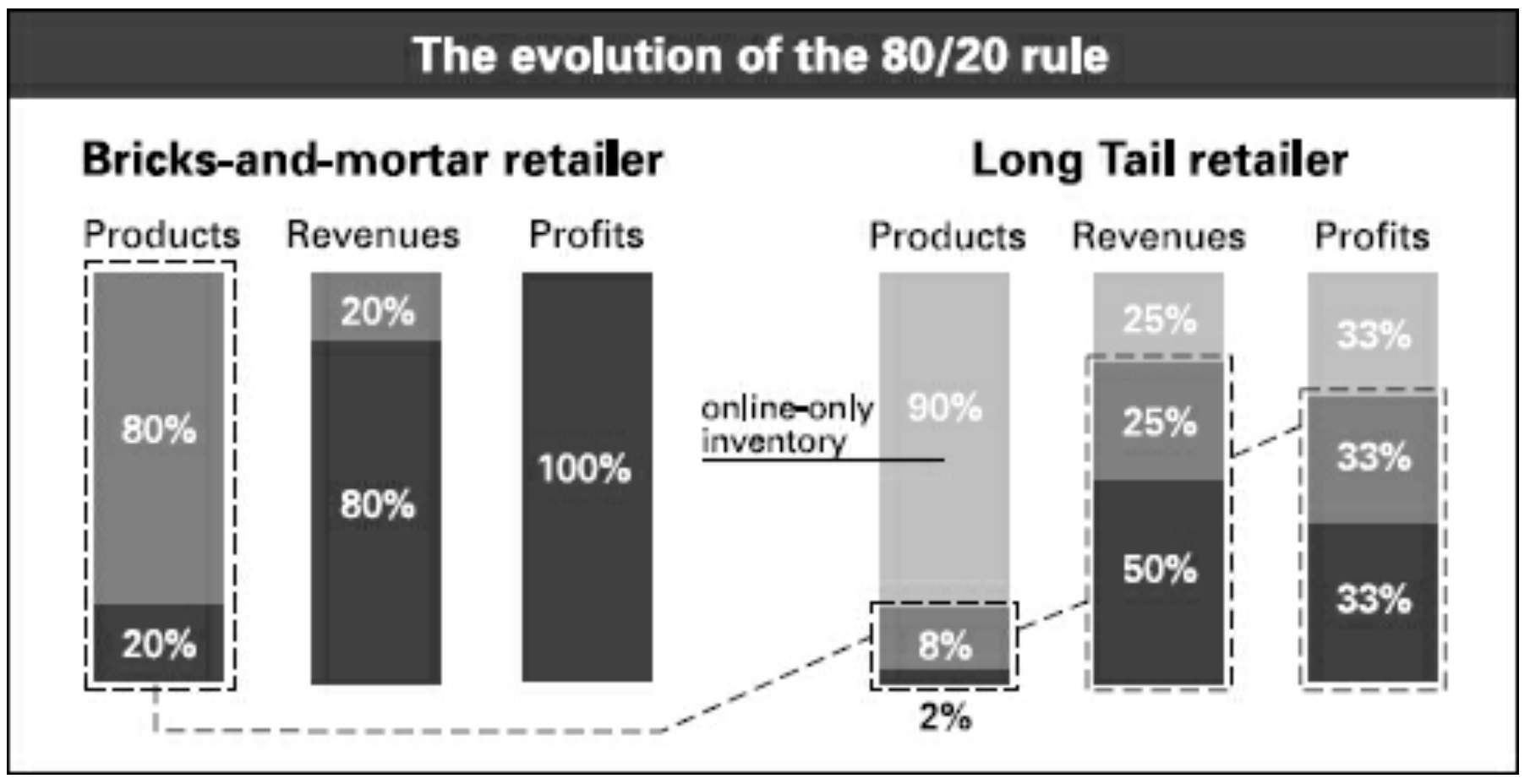 He expected the internet to bring the "death of the 80/20 rule" — where 20% of all products generate 80% of the revenue (and close to 100% of the profits).