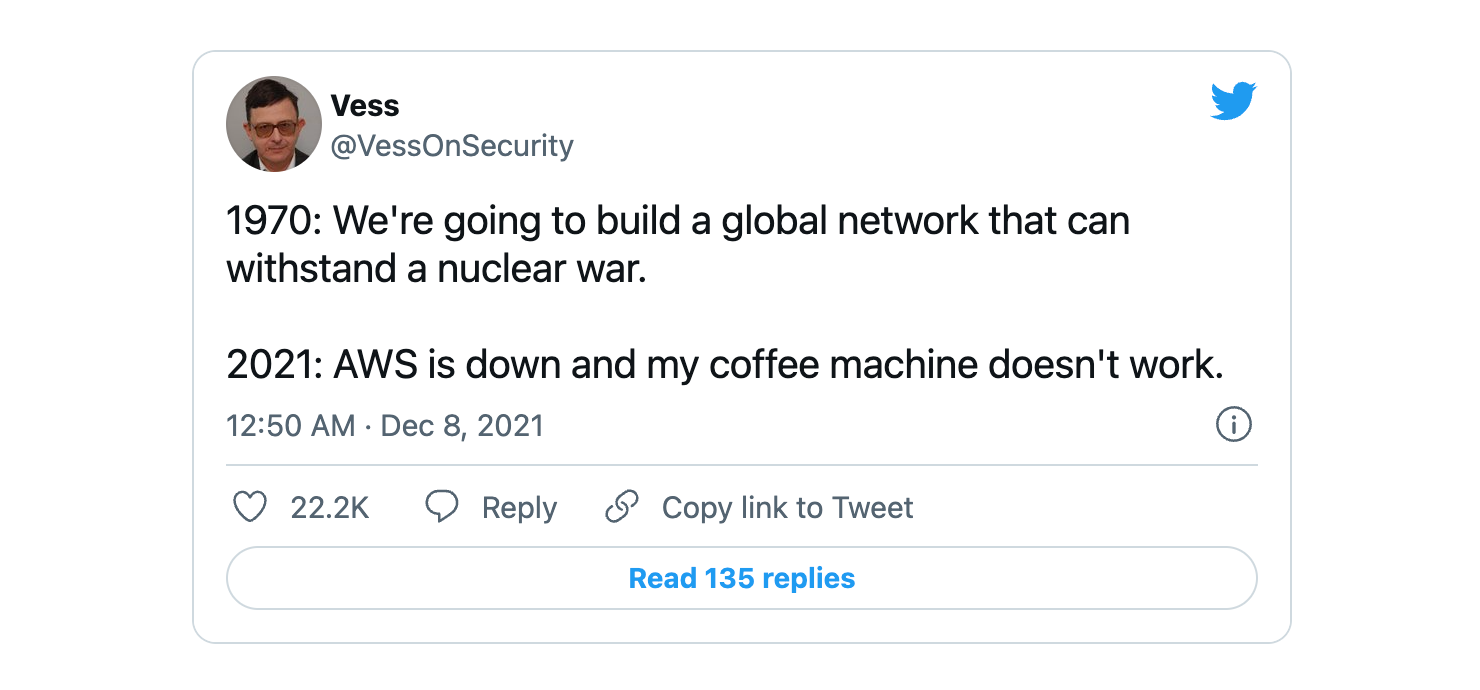 The author of the tweet was complaining about a global network that failed to get his coffee machine to work — but he was doing so on the same global network that enabled him to share his petty grievance with an audience of millions (and get more than 22,000 likes in return). And yes, it's a bummer that "smart" devices don't always work, but it's a miracle that we can tweet our way into anyone's heart and mind.
